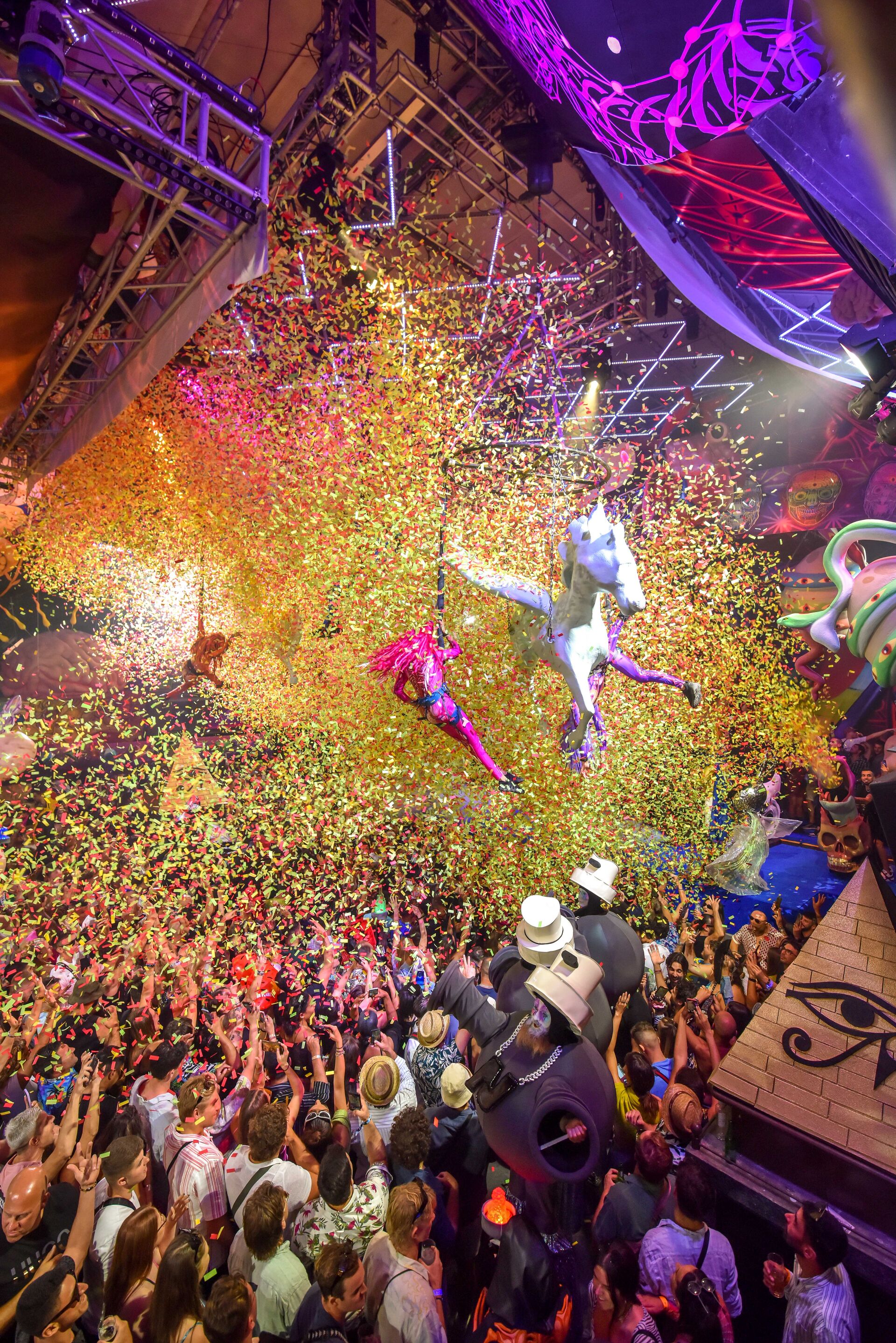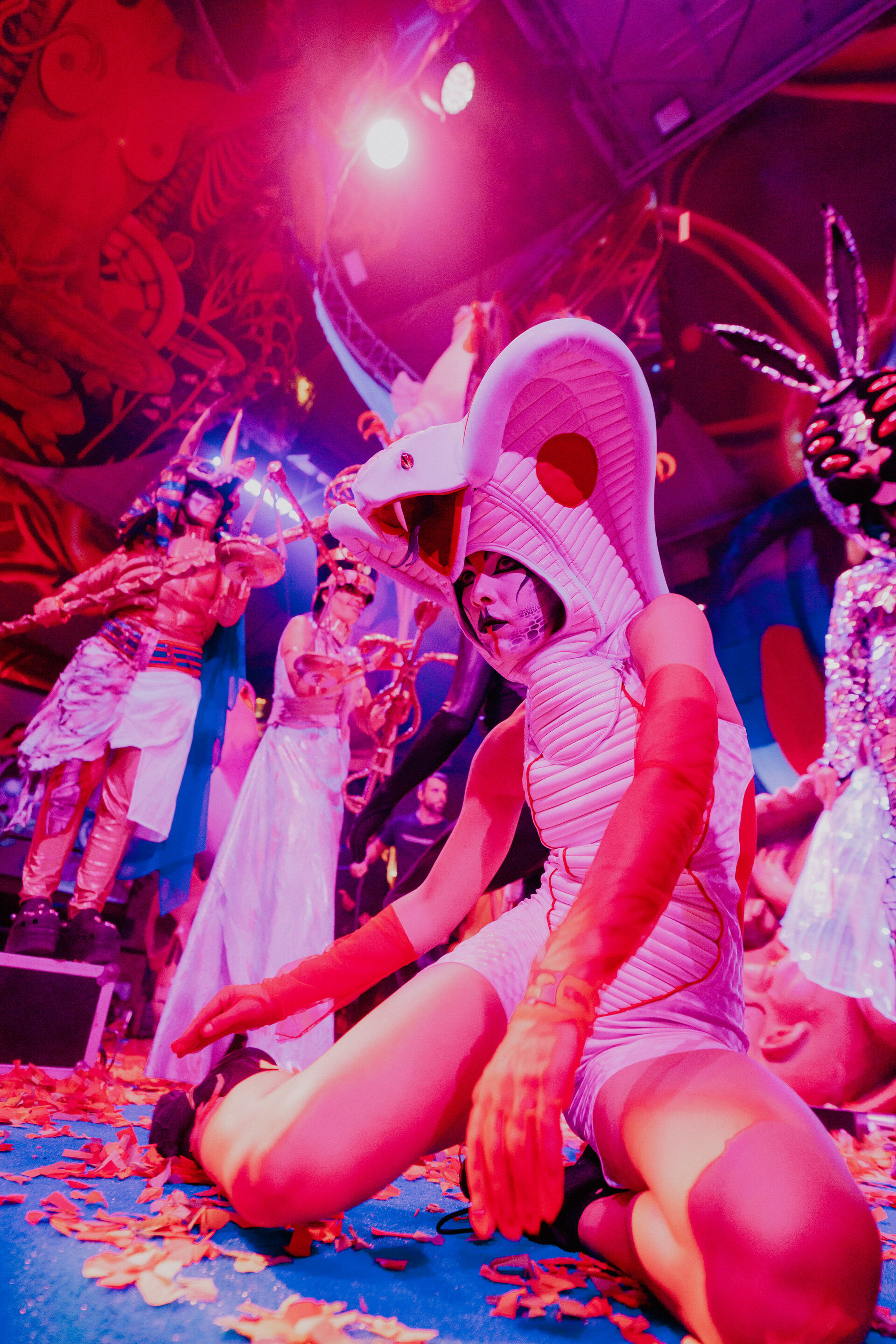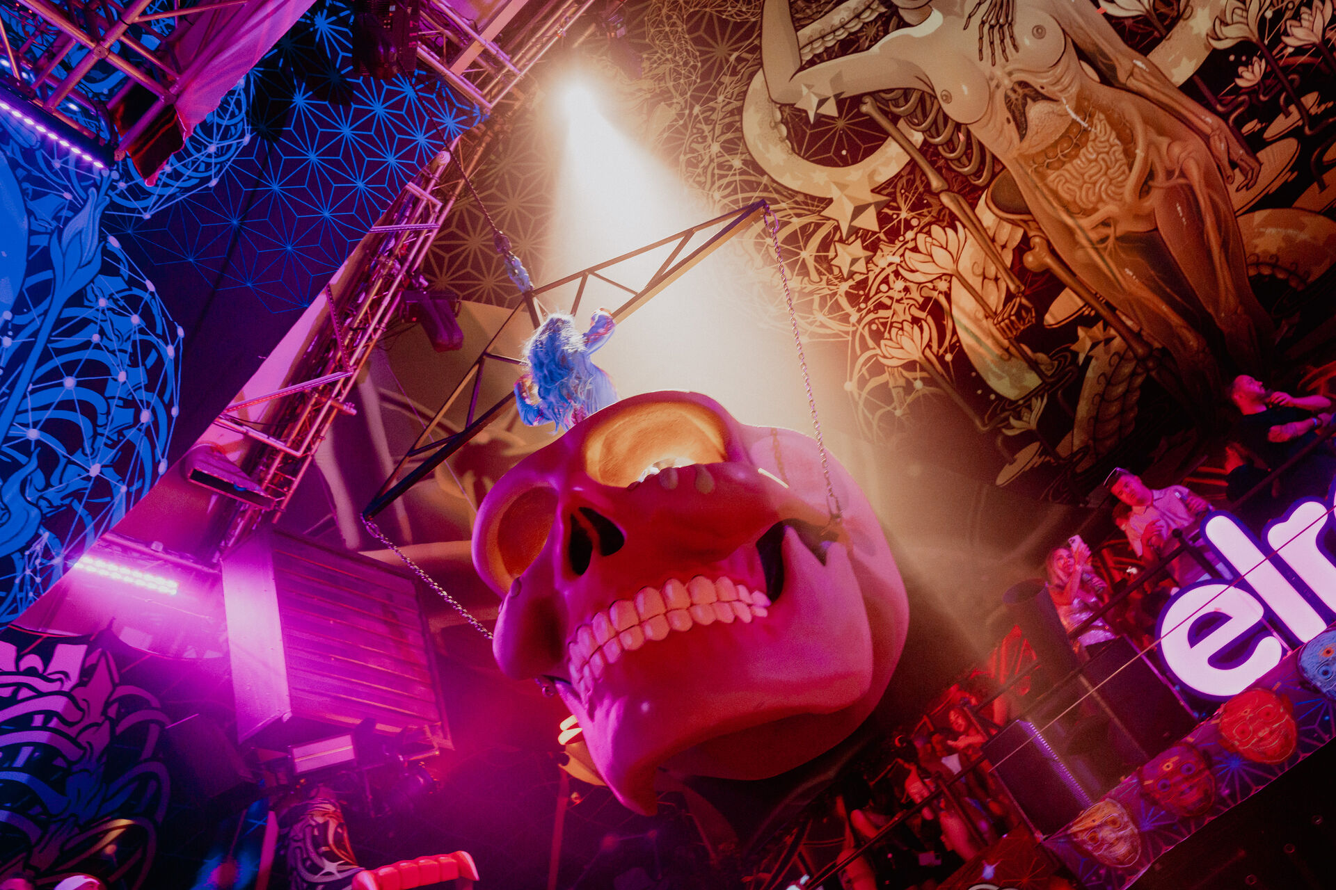 A lo largo de la noche, te encontrarás con diferentes figuras mitológicas, así como protagonistas del multiverso de NYCHOS. Prepárate para conocer serpientes encarnadas, brujas, animales y órganos espirituales, así como a Medusa, Anubis, Nefertiti y Horus. Cada encuentro está destinado a ser, y todo está conectado.