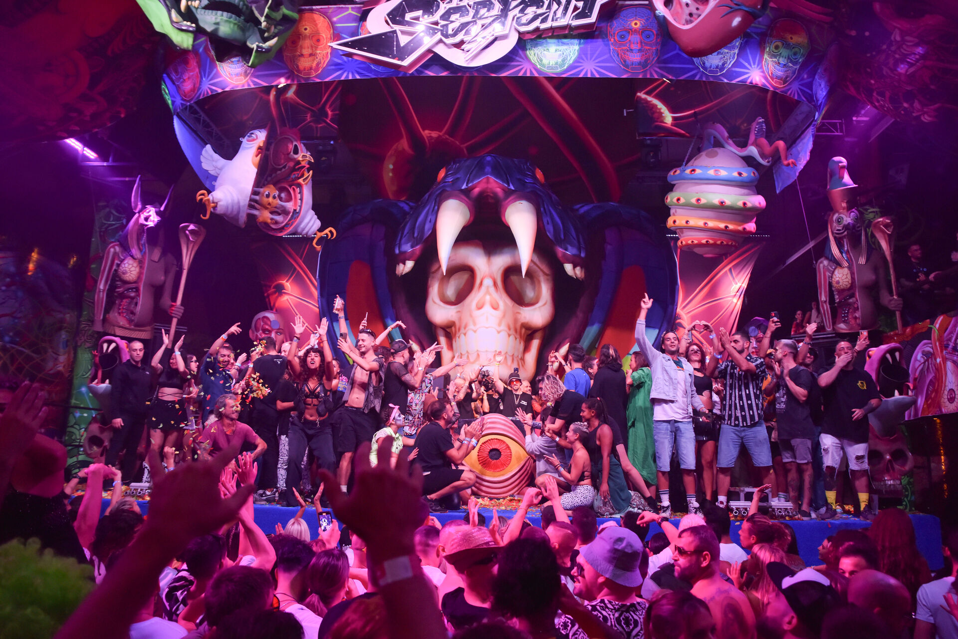 Si el objetivo principal del espectáculo 'DANCE WITH THE SERPENT' es hacerte bailar, sin duda, la música desempeñará un papel crucial. Nos llevará en un viaje a través de diversos paisajes sonoros, creando ritmos y momentos que evolucionarán durante la fiesta, guiándonos en nuestra propia exploración creativa dentro del universo único de Nychos. ¡Prepárate para experimentar el talento de algunos de los mejores DJs del planeta!